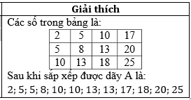 Cho một bảng số gồm 𝑀 dòng và 𝑁 cột, các dòng được đánh số từ 1 đến ~𝑀~, các cột được đánh chỉ số từ 1 đến ~𝑁~, ô ở dòng 𝑖 cột 𝑗 có giá trị bằng ~𝑖^2 + 𝑗^2~. Các số trong bảng được sắp xếp tăng dần tạo thành dãy ~𝐴~ có các phần tử được đánh chỉ số từ 1 đến ~𝑀 × 𝑁~.